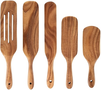 Espátulas de madeira 5 peças, utensílios de cozinha, spatulas de madeira natural